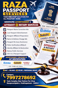 Raza Passport Services, a trusted and experienced Passport Agent in Visakhapatnam, Andhra Pradesh, serving the community for 14 years. Our dedicated team assists with passport applications, renewals, and corrections, ensuring a smooth and hassle-free experience. With expert knowledge and a personalized approach, we guarantee efficient and accurate services. Book an appointment today and let us help you navigate the passport process with ease!